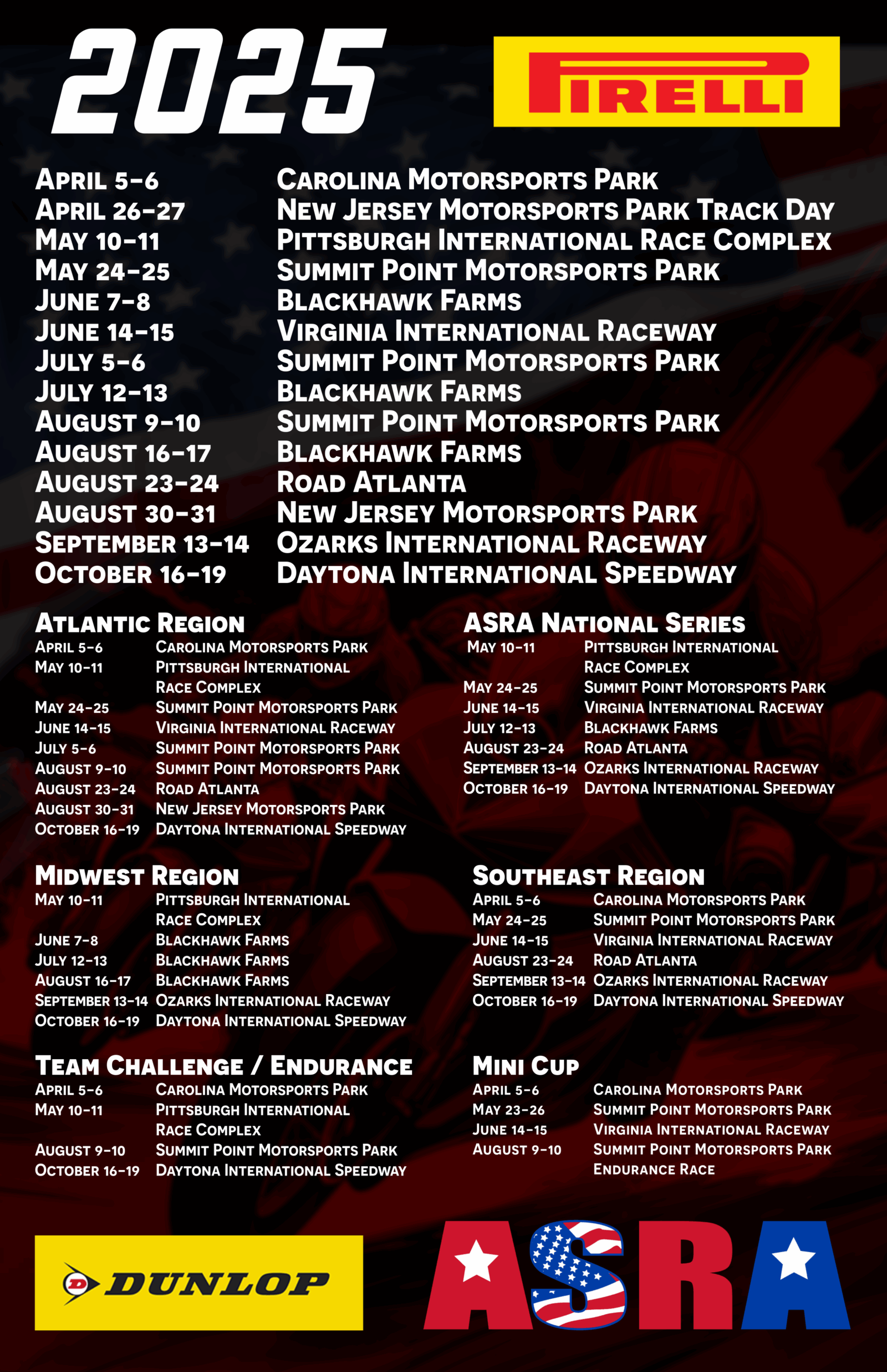 Get ready for an exciting start to the 2025 racing season! The ASRA MiniGP USA Round 2 kicks off May 24-25 at Summit Point Motorsports Park, featuring thrilling classes for young riders, including Stock 50, Stock 110, Stock 125, GP110, GP160 and GP190, and Supermoto. Don’t miss the action—see you at Summit!